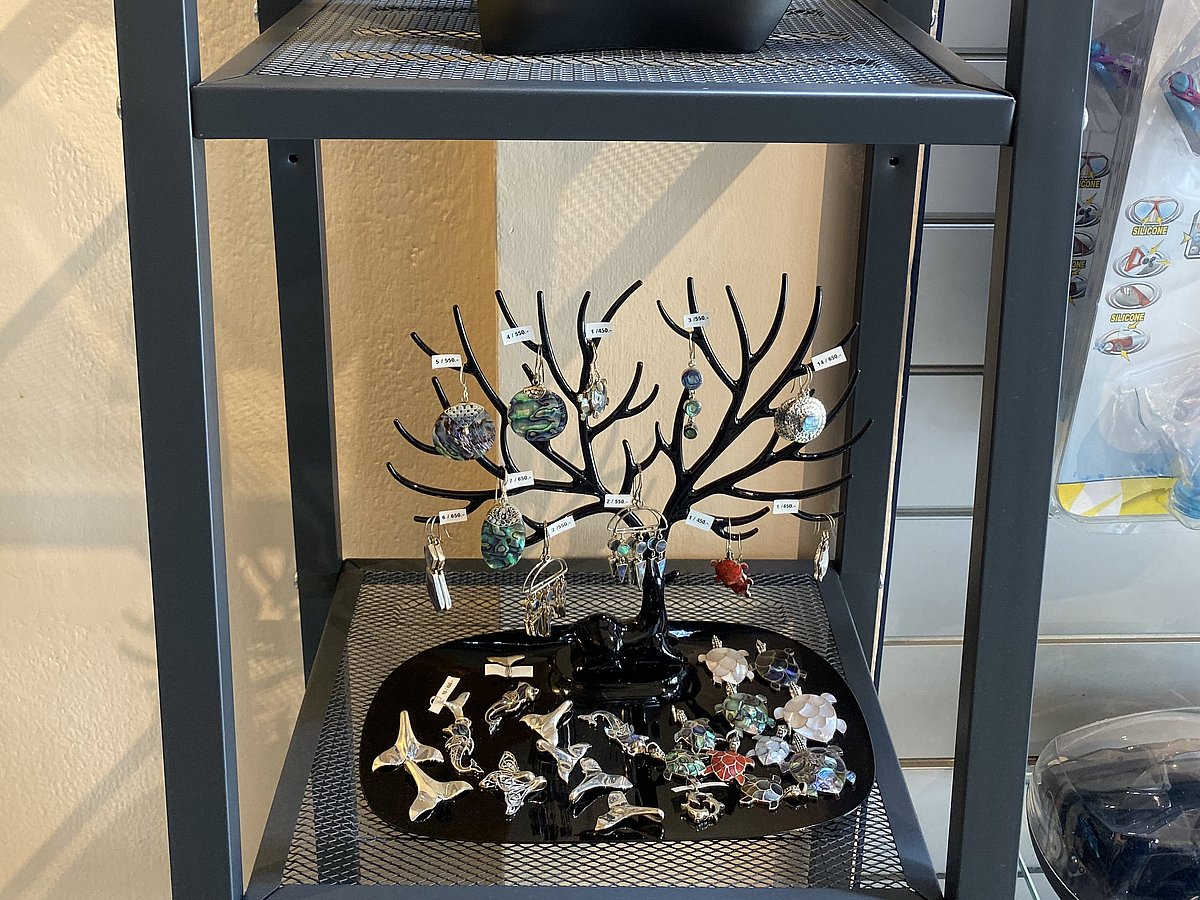 Pour les souvenirs, nous avons également une petite section avec des bijoux et, bien sûr, nos t-shirts Wetzone.