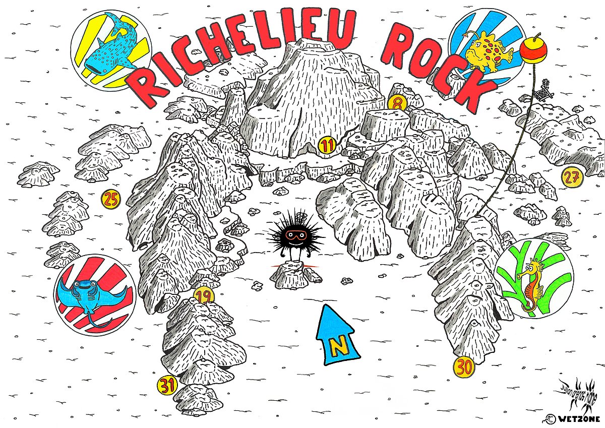 Richelieu Rock liegt in der Andamanensee, etwa 18 Kilometer östlich von Surin Island und ungefähr 200 Kilometer nördlich von Phuket. Es ist einer der bekanntesten Tauchplätze in Thailand.