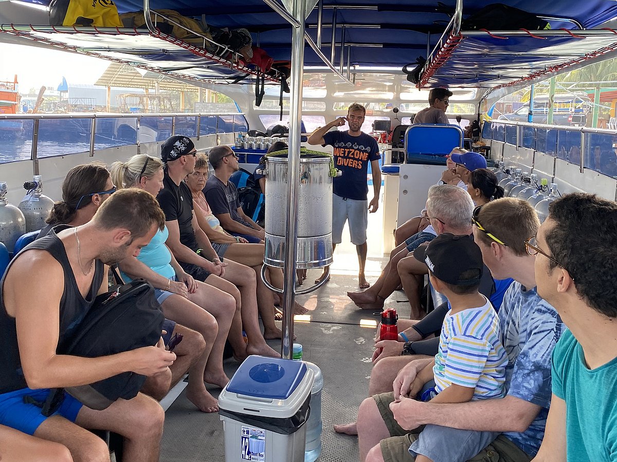 Durch die 3 Außenbordmotoren mit je 250 PS, bringen wir Euch viermal pro Woche, in etwa 1 Stunde und 20 Minuten zum Richelieu Rock, dem wohl besten Tauchplatz in Thailand. Nach Koh Bon und Koh Tachai, die wir jeweils 2 mal pro Woche anfahren, geht es sogar noch schneller.