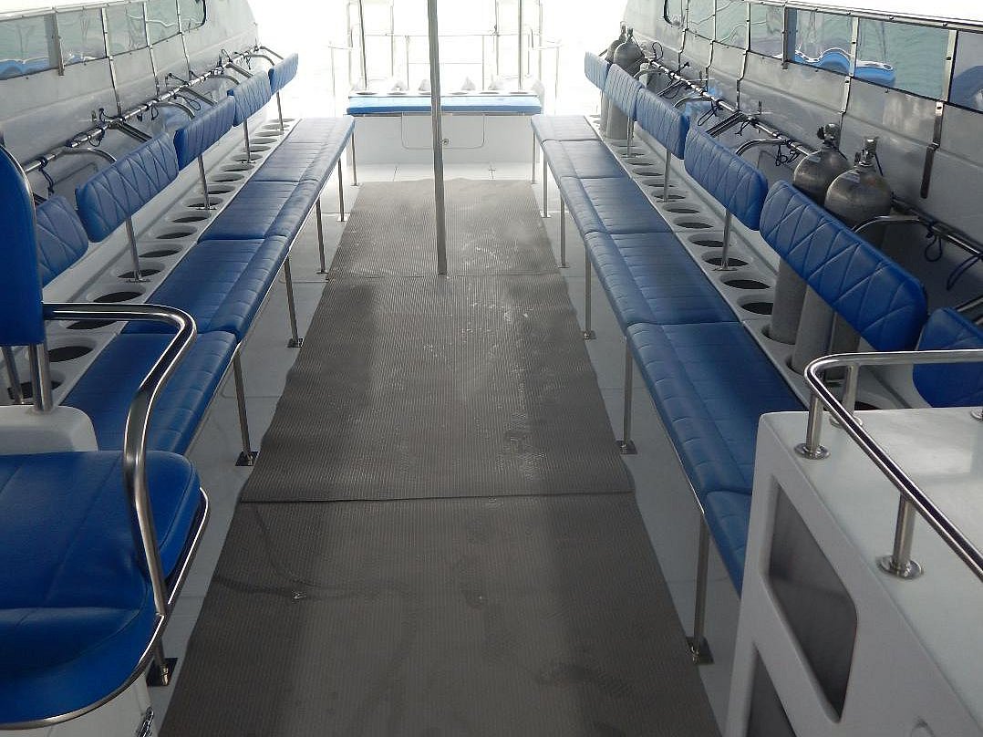 Das Schnellboot wurde von uns speziell für Tauchausflüge ausgerüstet. Durch unsere innovativen Tankhalterungen hinter den Sitzplätzen, bleibt ausreichend Platz um sich auf dem Boot zu bewegen oder die Beine auszustrecken.